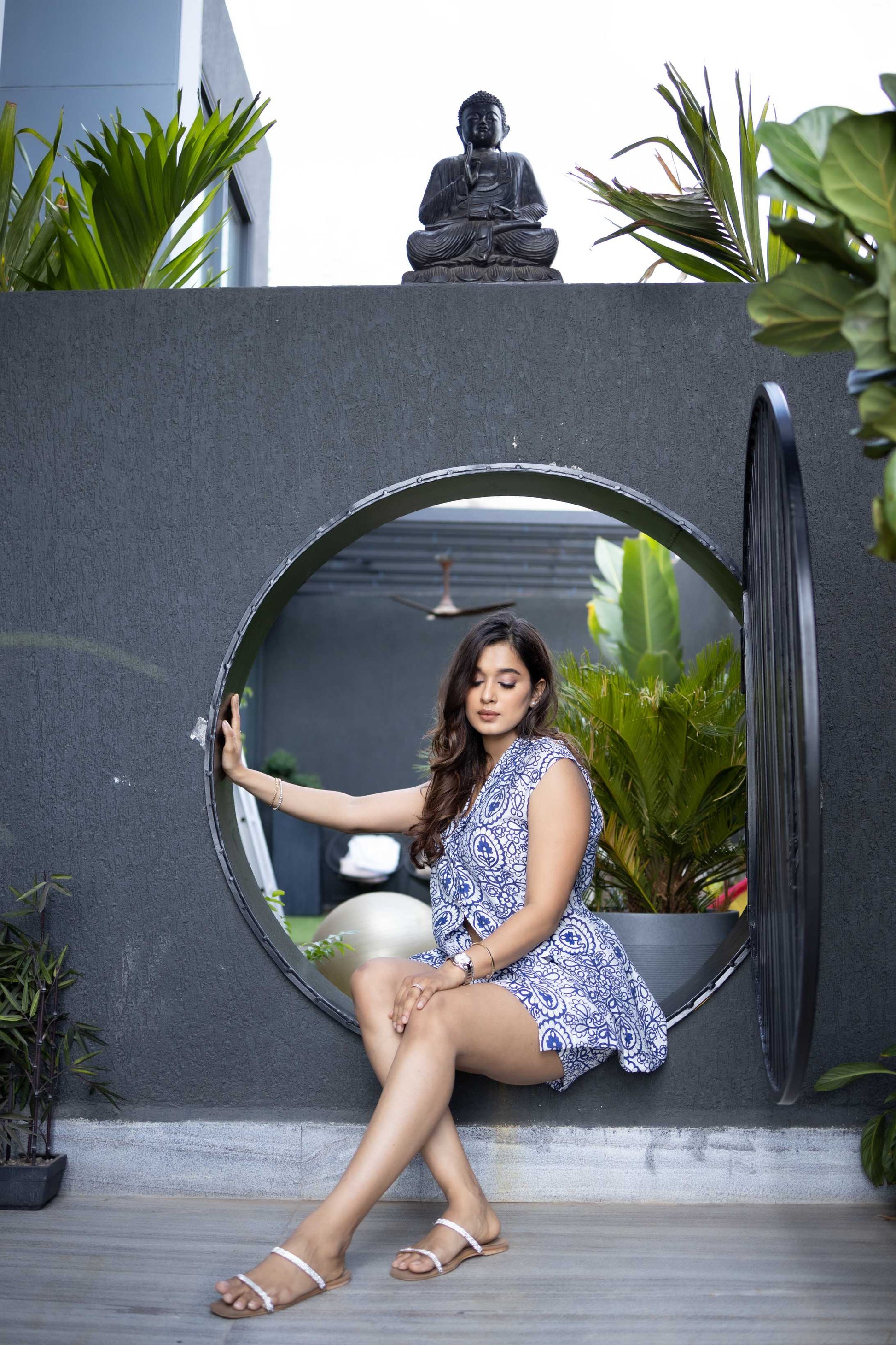 Olivia blazer and shorts perfect for celebrating those summer bluesOlivia sleeveless blazer and shorts perfect for celebrating those summer blues. This print is inspired by intricated pattern from Scandinavian folk art.