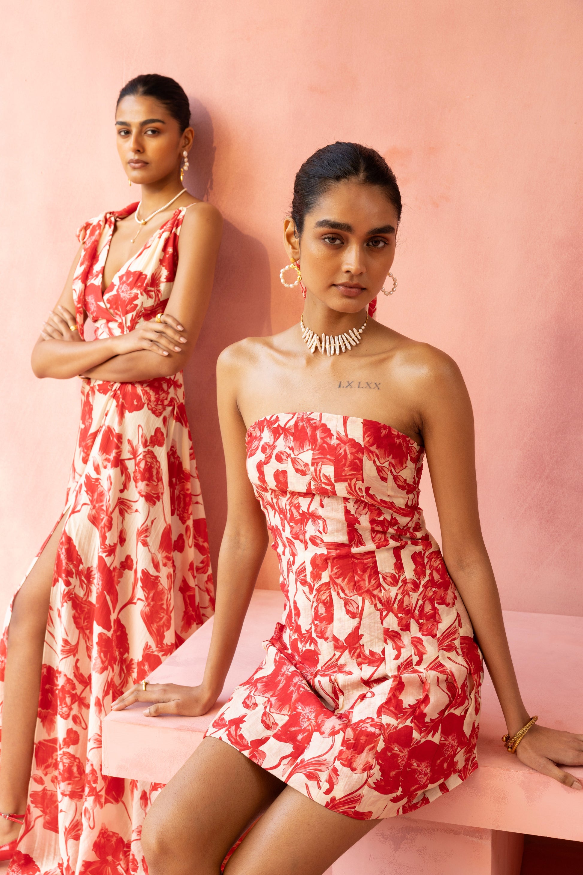 Playful yet polished, this tube dress is your go-to for effortless summer statements. Crafted in a lightweight, breathable fabric, it features a bold floral print that brings instant energy to the look. The strapless silhouette highlights the shoulders and neckline, while subtle paneling creates a flattering, easy fit.
