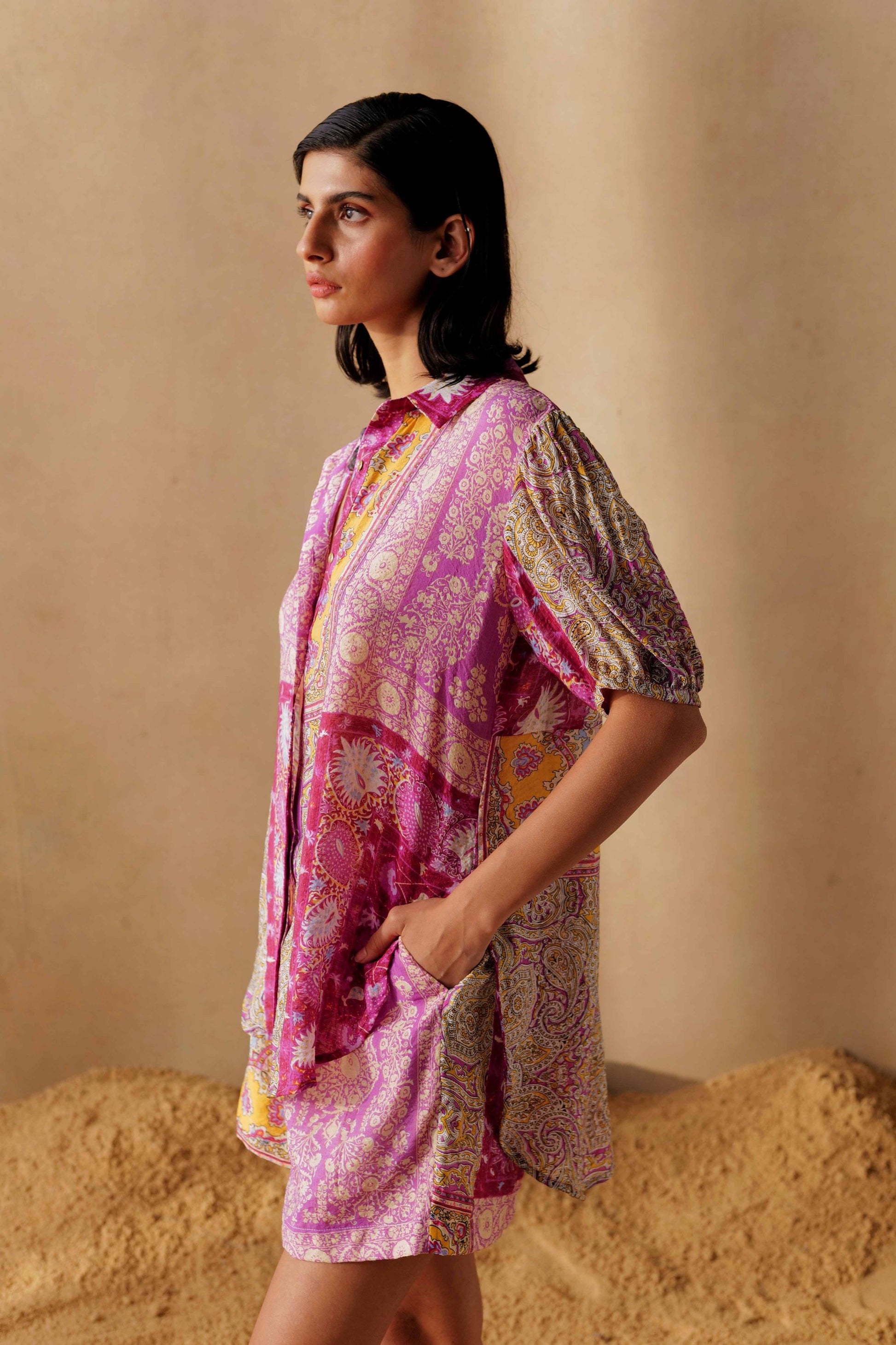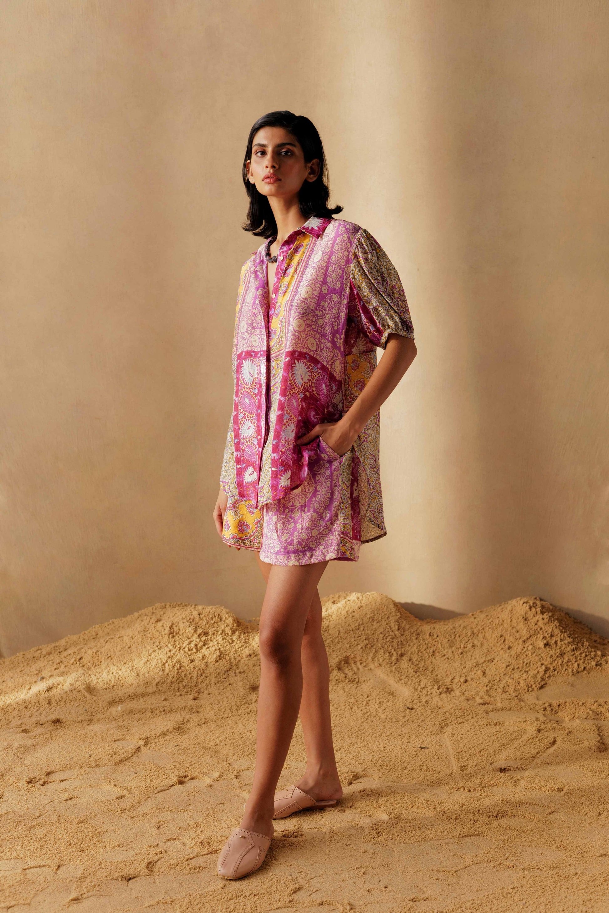 Colors and prints capture the essence of our brand with this Back gathered shirt at the waist for the right fit with all-day long comfort fit shorts with pockets.