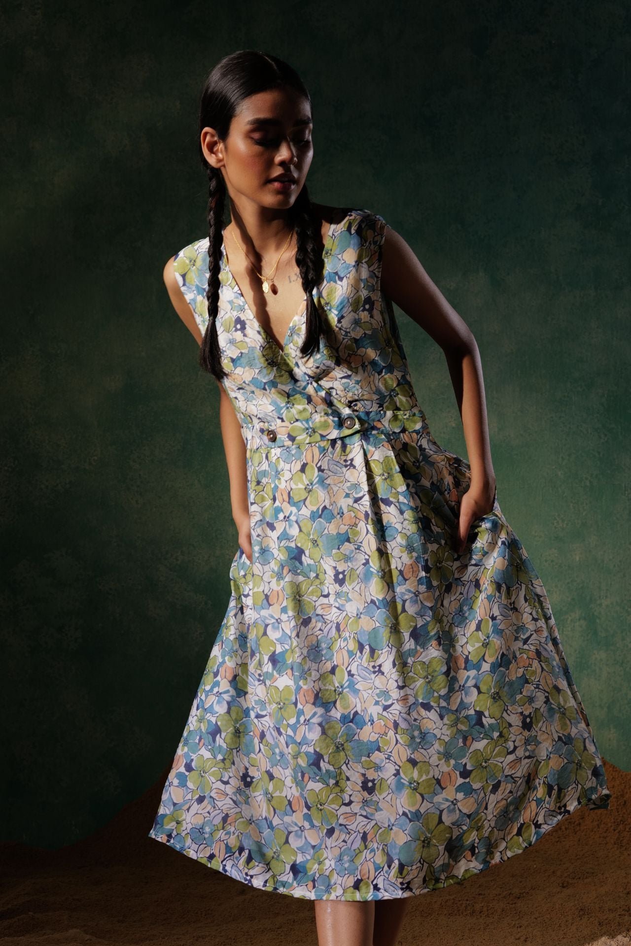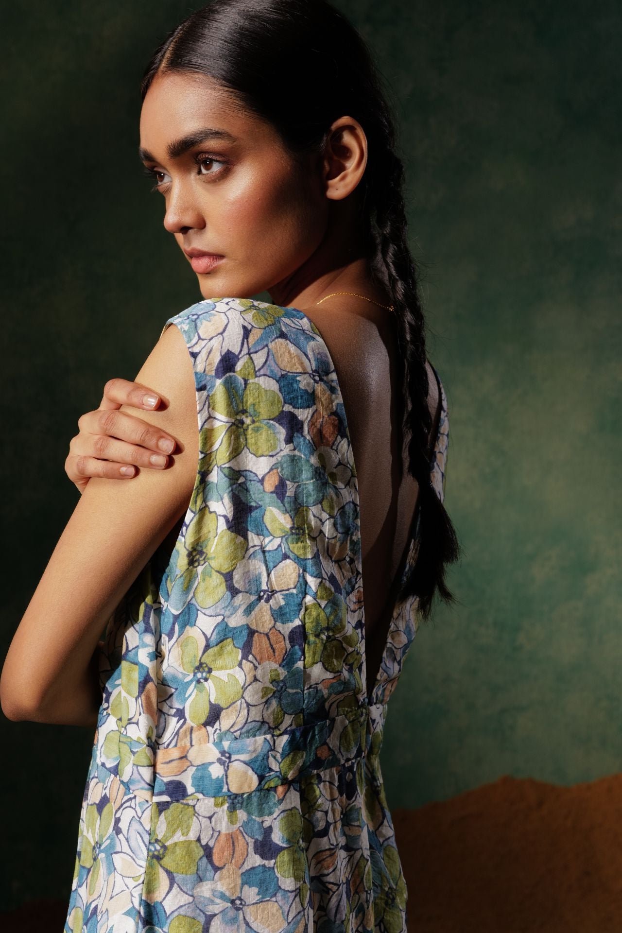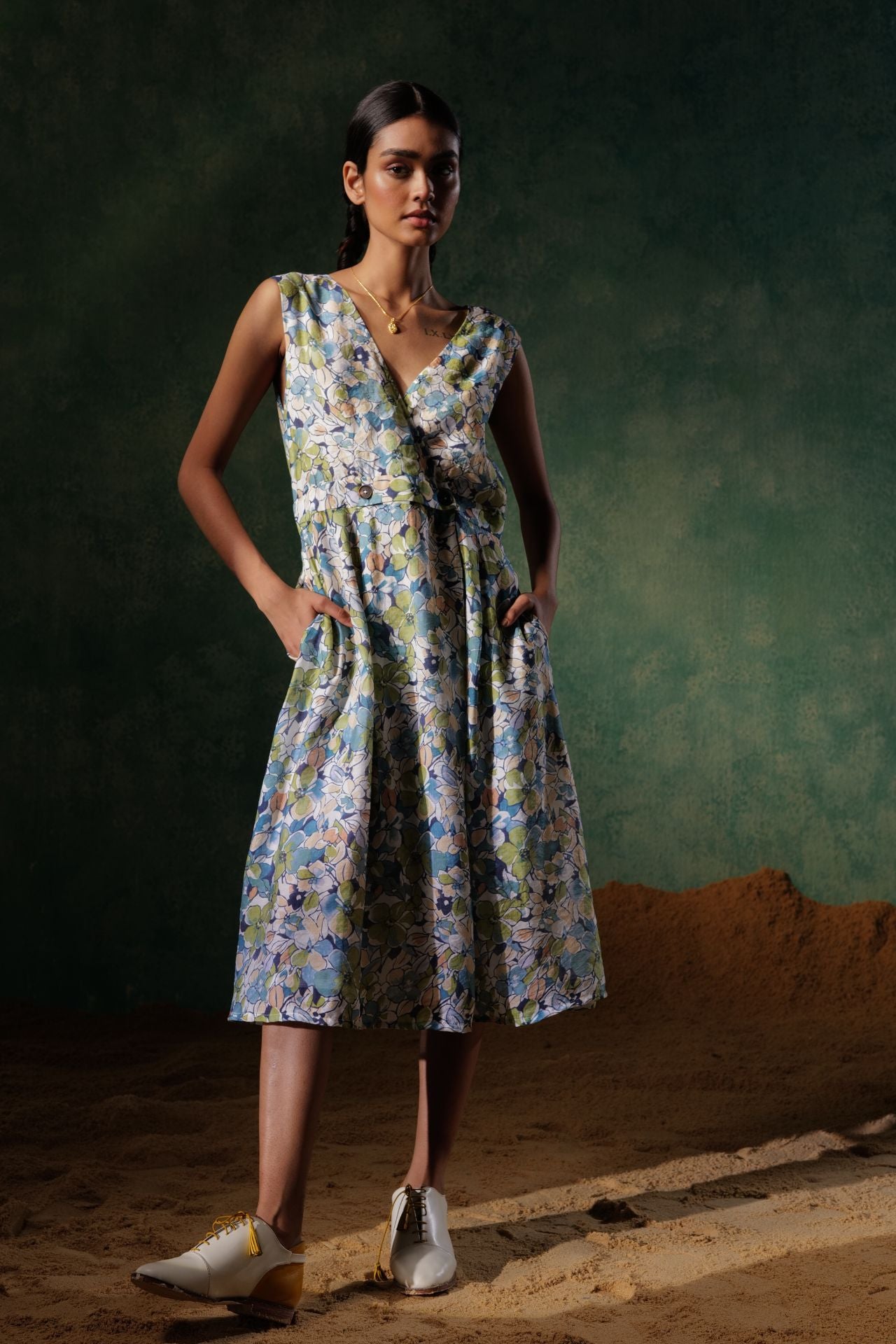 Our enchanting "Norah" A-line dress, with a captivating V-neckline, sleeveless design, and convenient back zip closure. Drawing inspiration from the renowned painter Georgia O'Keeffe, this collection showcases vibrant watercolor prints that make a striking statement. Embrace the artistic influence and sophistication of the "Norah" dress, as you exude elegance and grace in this timeless ensemble.