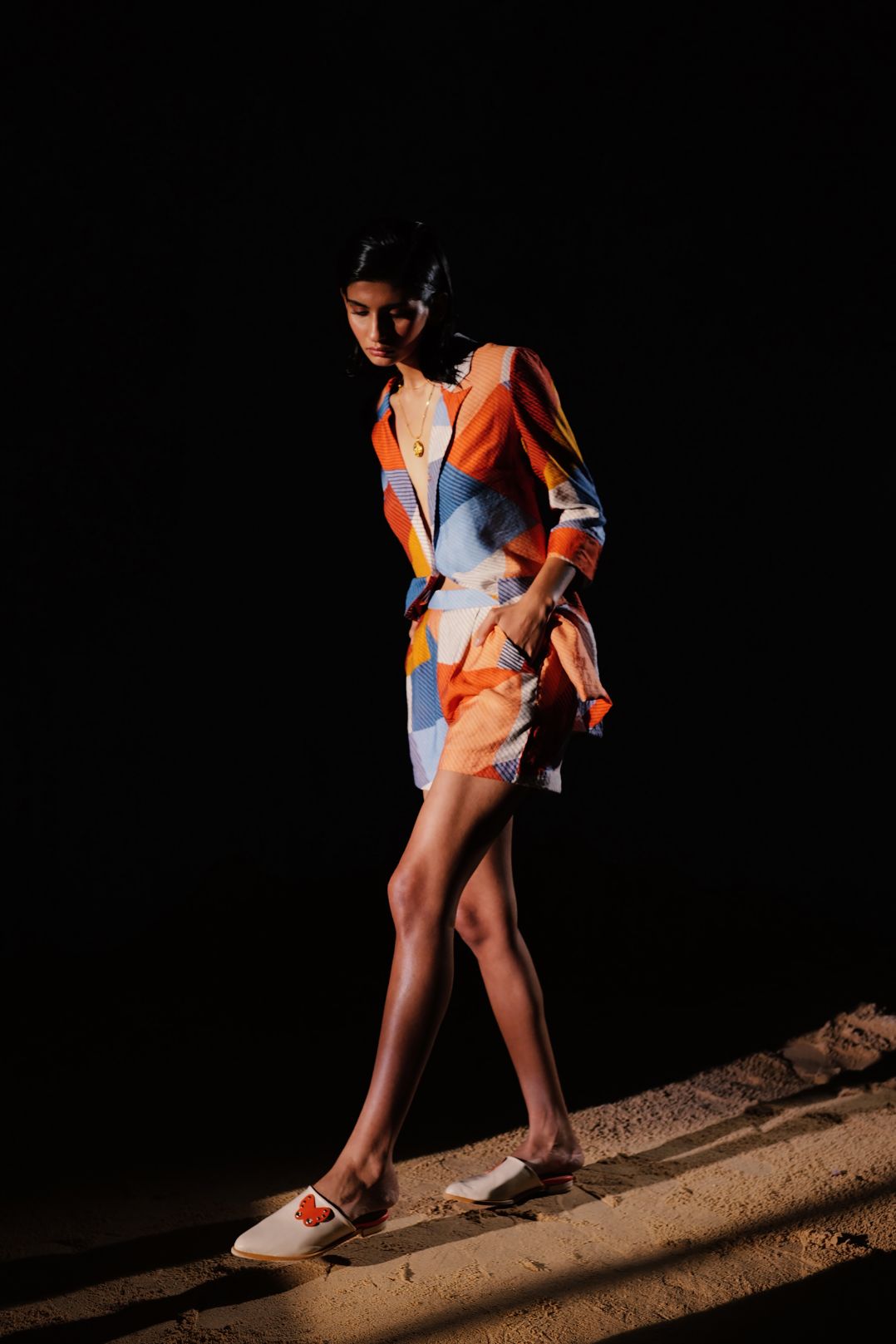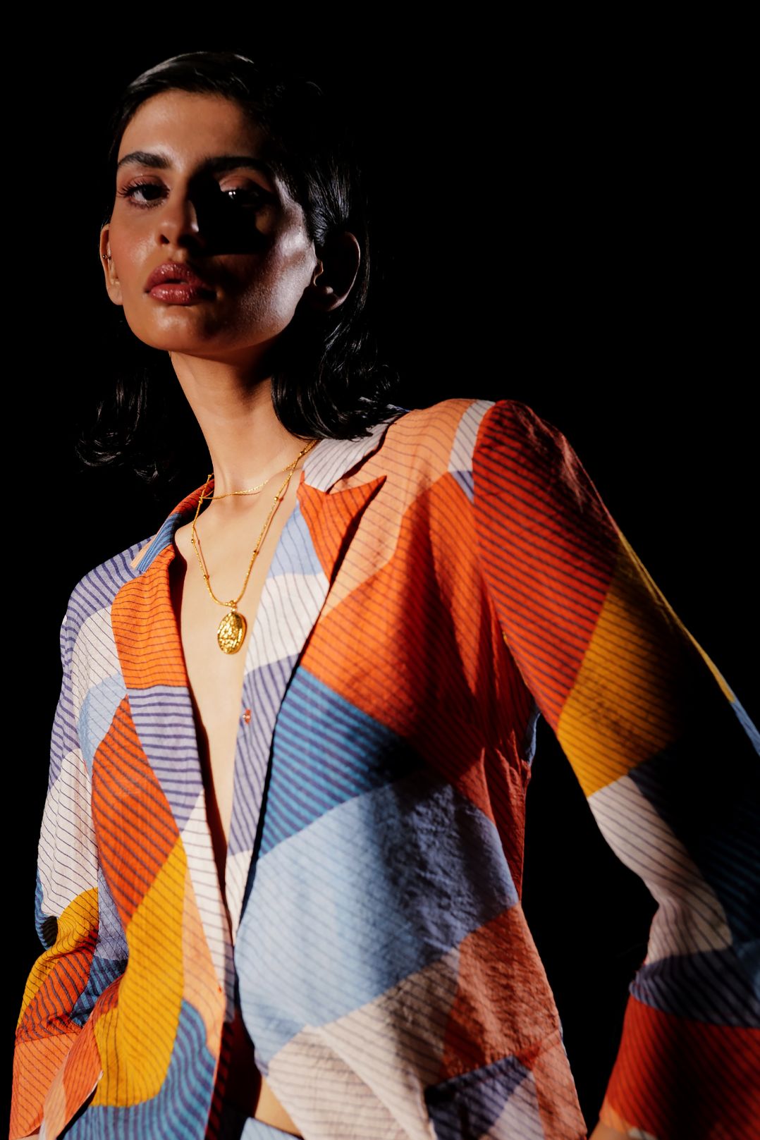 our resplendent "Paprika" co-ord set, designed to immerse you in a dreamy resort-inspired aesthetic. This set showcases hues reminiscent of the 90s, adding a touch of nostalgia to your enriching summer experience. The blazer features 3/4th sleeves with cuffs and a lapelled collar, exuding a sophisticated and stylish appeal. Showcasing flap pockets in the front, the blazer effortlessly combines functionality with flair. Paired with coordinating shorts, the "Paprika" co-ord set is perfect for embracing the essence of summer with its captivating design and enchanting colors.