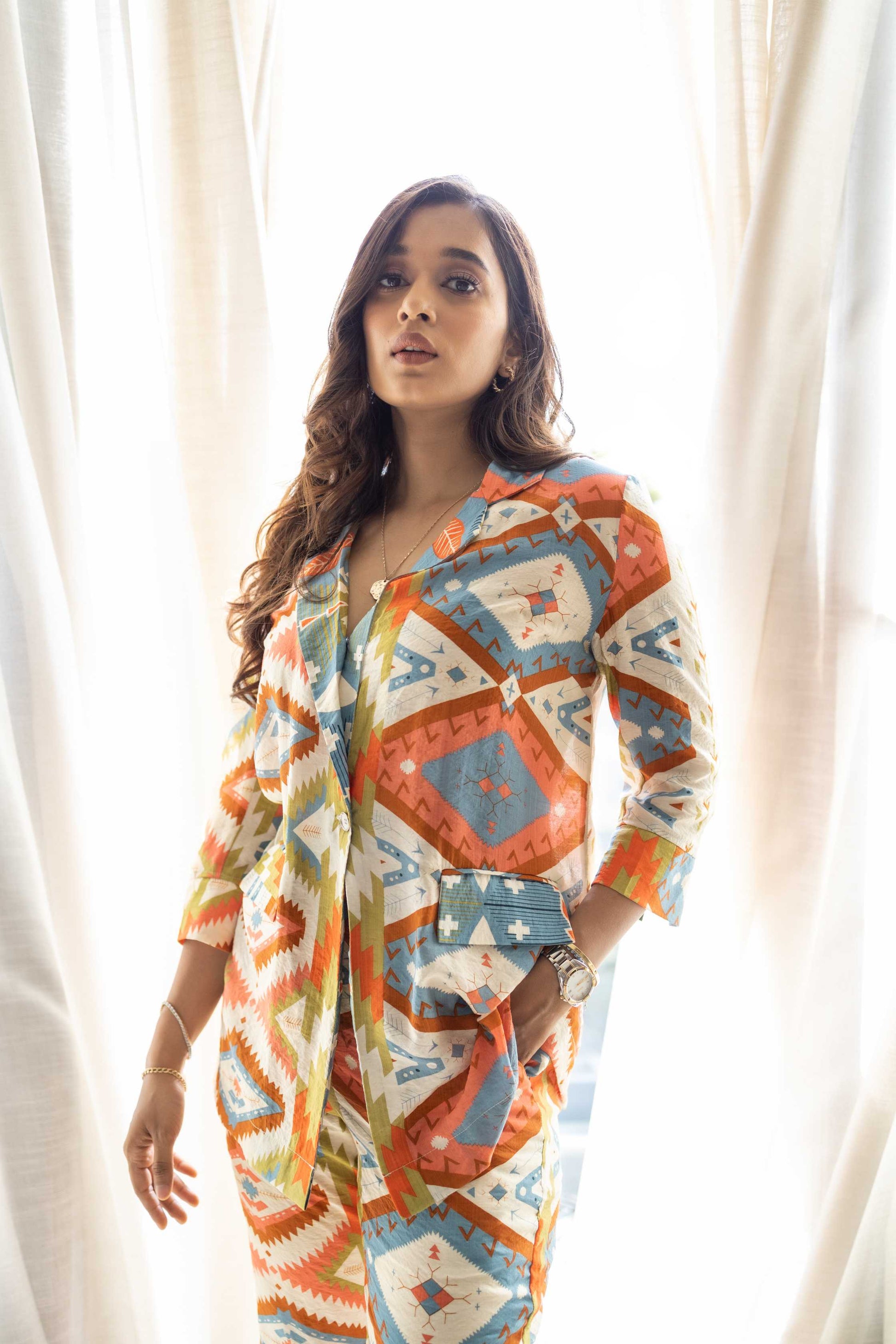 Blazer and pants set with pop of vibrant hues stitched to perfectionClean and contemporary, the blazer pant set is tailored for a smart, playfull and elegant look with Pop of vibrant hues stitched to perfection.