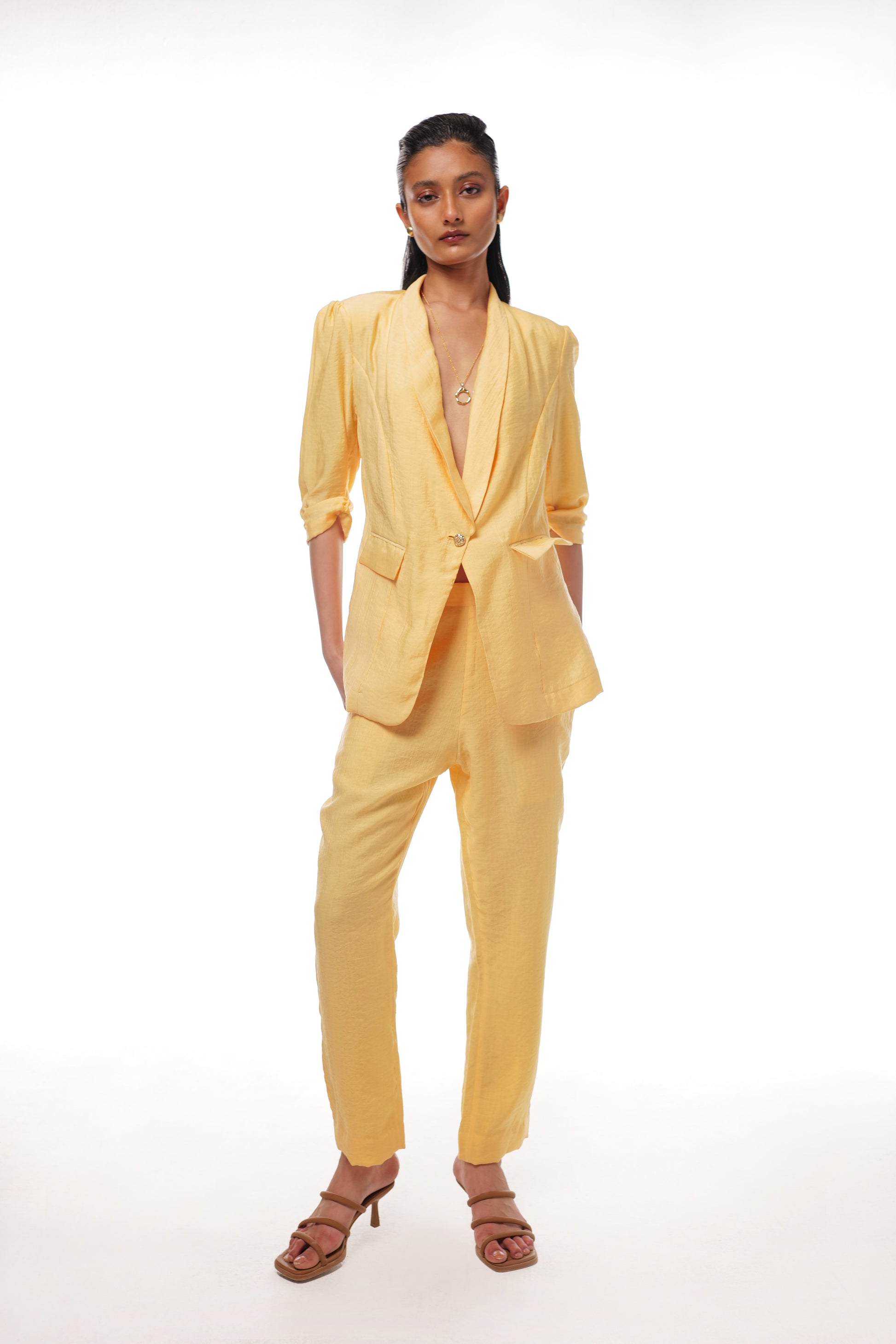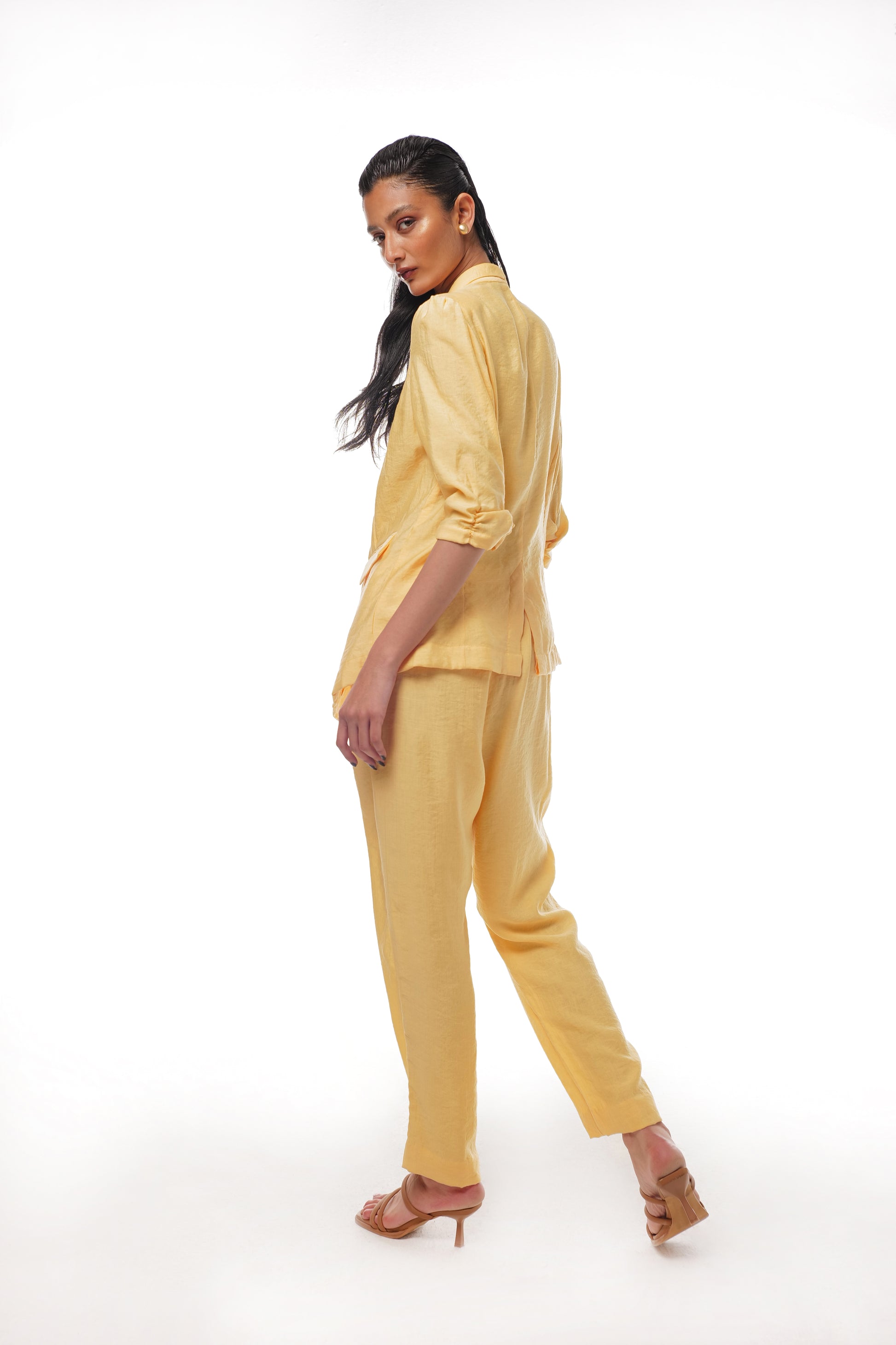 Introducing the Sunshine Blazer Pants, the perfect blend of elegance and mystique inspired by the timeless allure of Twilight. Crafted from luxurious, lightweight blend of cotton and silk fabric, they offer a comfortable yet sophisticated fit. Embrace your enigmatic style and shine effortlessly with every step.